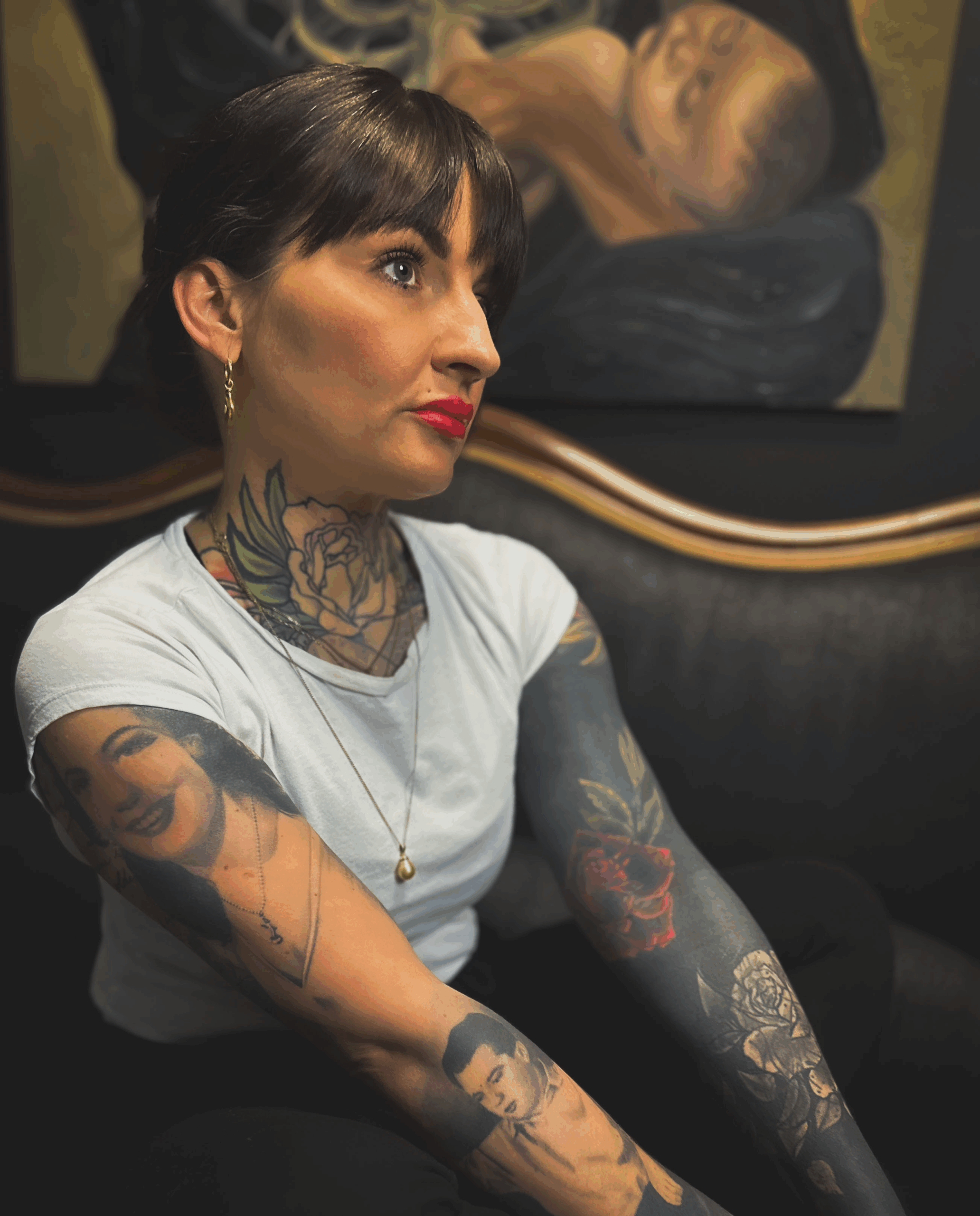 Ich bin Frau von M, freischaffende Künstlerin und Tattoo Artist. Kunst begleitet mich schon immer als großer Teil meines Lebens – der Schritt, sie auch auf die Haut zu bringen, war für mich eine natürliche Entwicklung. Seit 2014 lebe ich meine Leidenschaft fürs Tätowieren aus und begleite Menschen dabei, ihre persönlichen Geschichten in einzigartige Motive zu verwandeln.